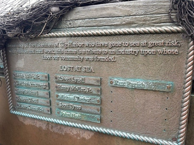 The lost as Sea Statue, a tribute to Gig Harbor Washington fishers who died at sea.